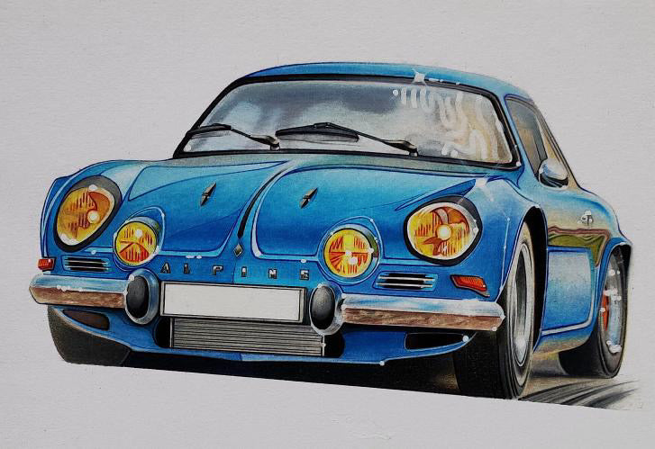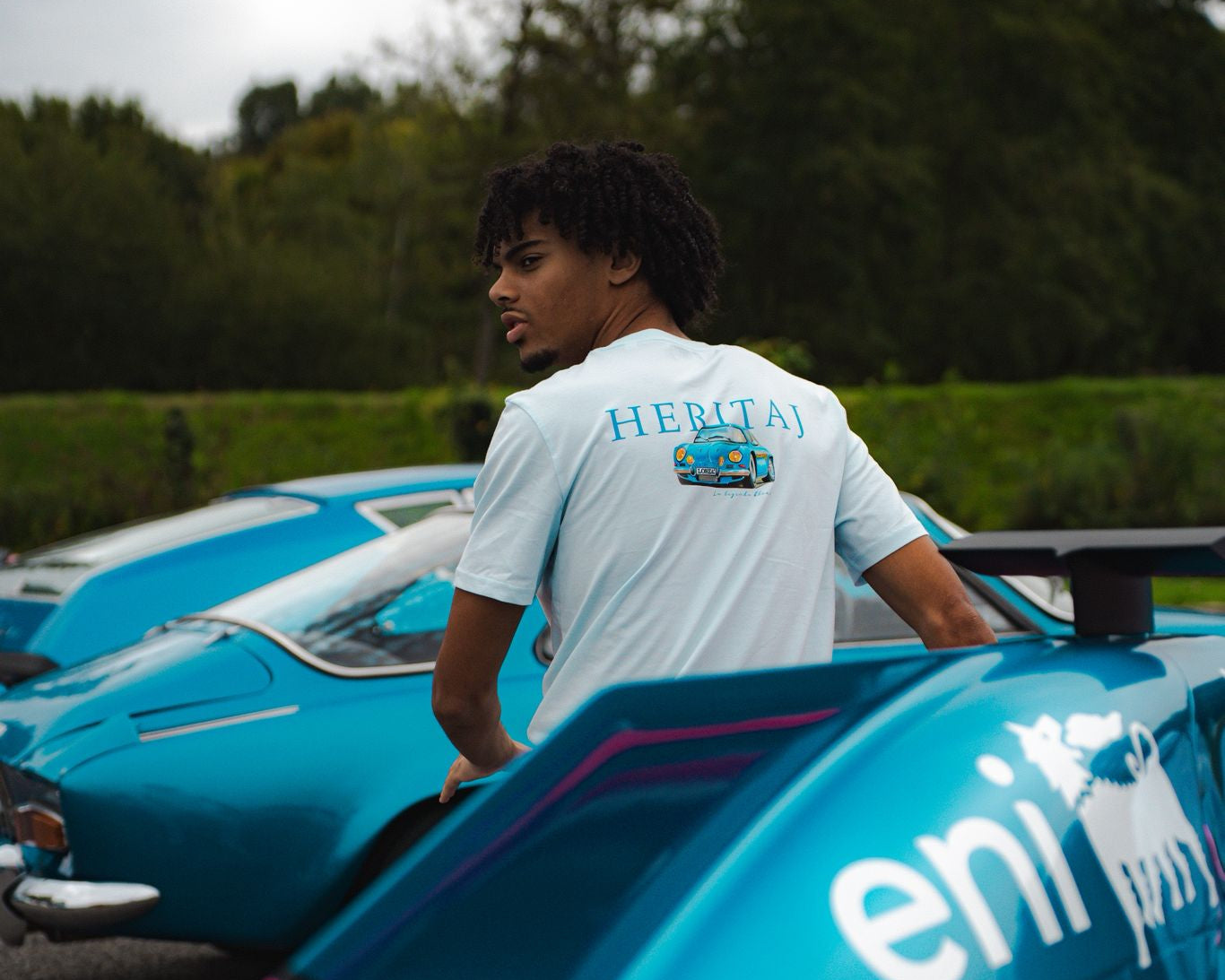 Sacha est un jeune artiste dessinateur à l’origine des trois dessins automobiles présents sur les t-shirts (Alpine A110, F40, 4L).
