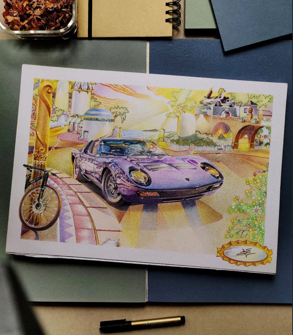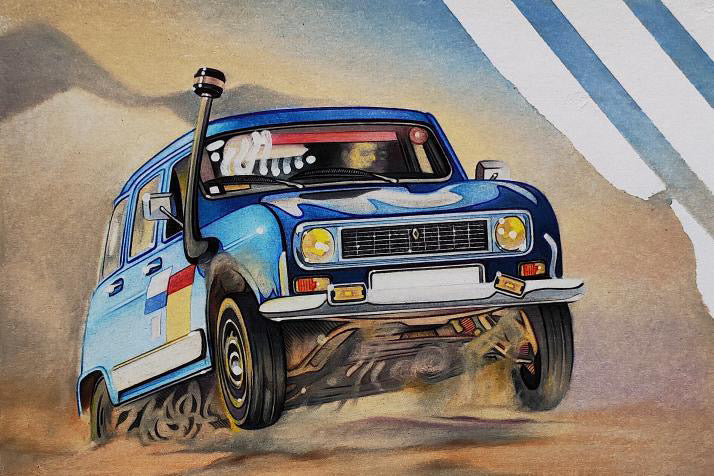 Pour cette deuxième collection éphémère, nous avons décidé de collaborer avec un jeune dessinateur automobile. Ici, rien n’est laissé au hasard : chaque visuel est dessiné à la main, avant d’être adapté pour devenir une véritable pièce textile.